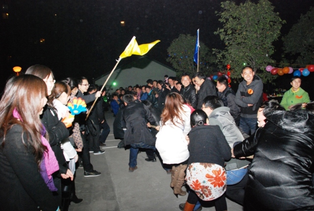 在中国水电七局成都工程有限责任公司院内,彩灯闪烁,热闹非凡,座无虚席。