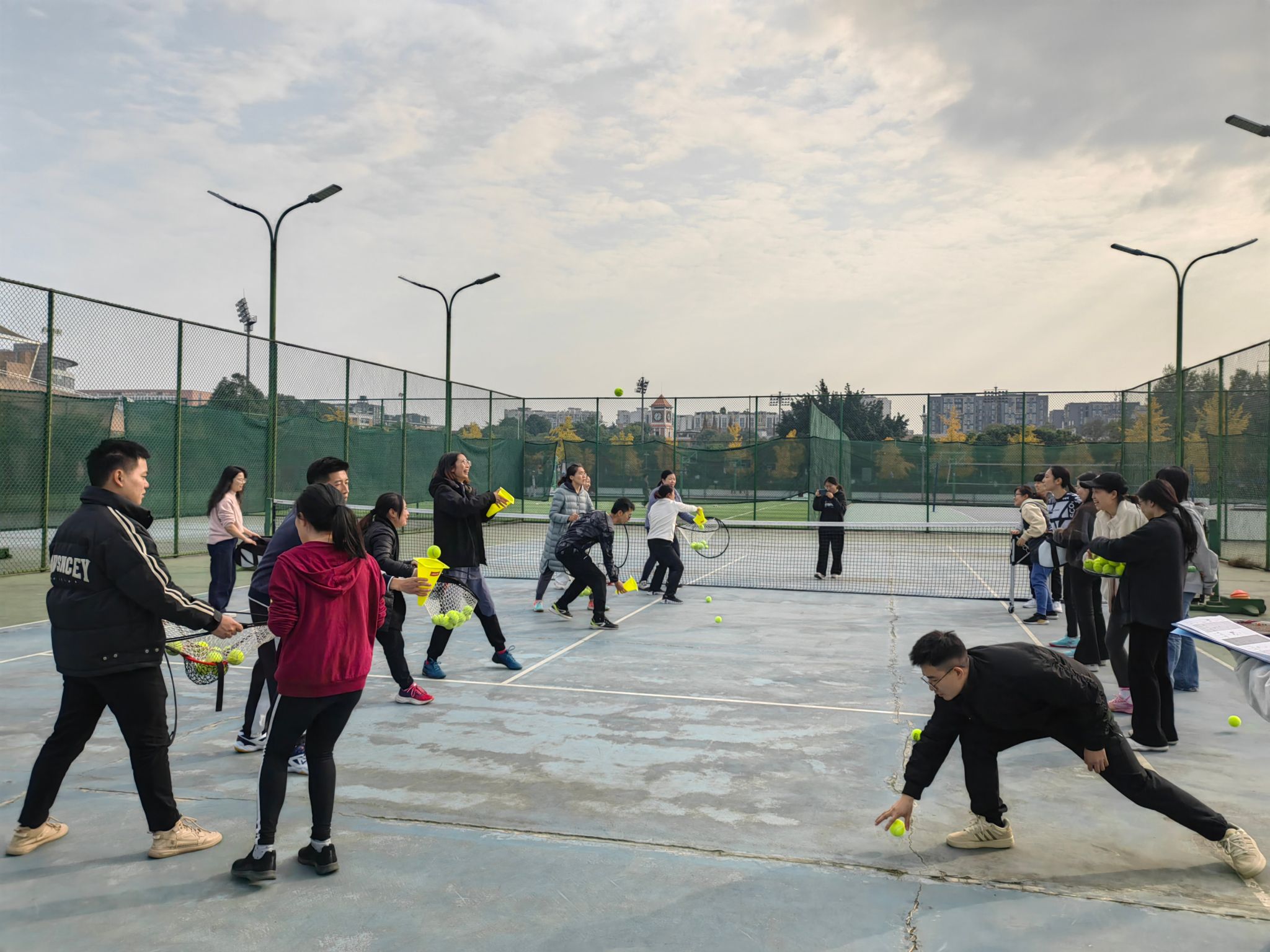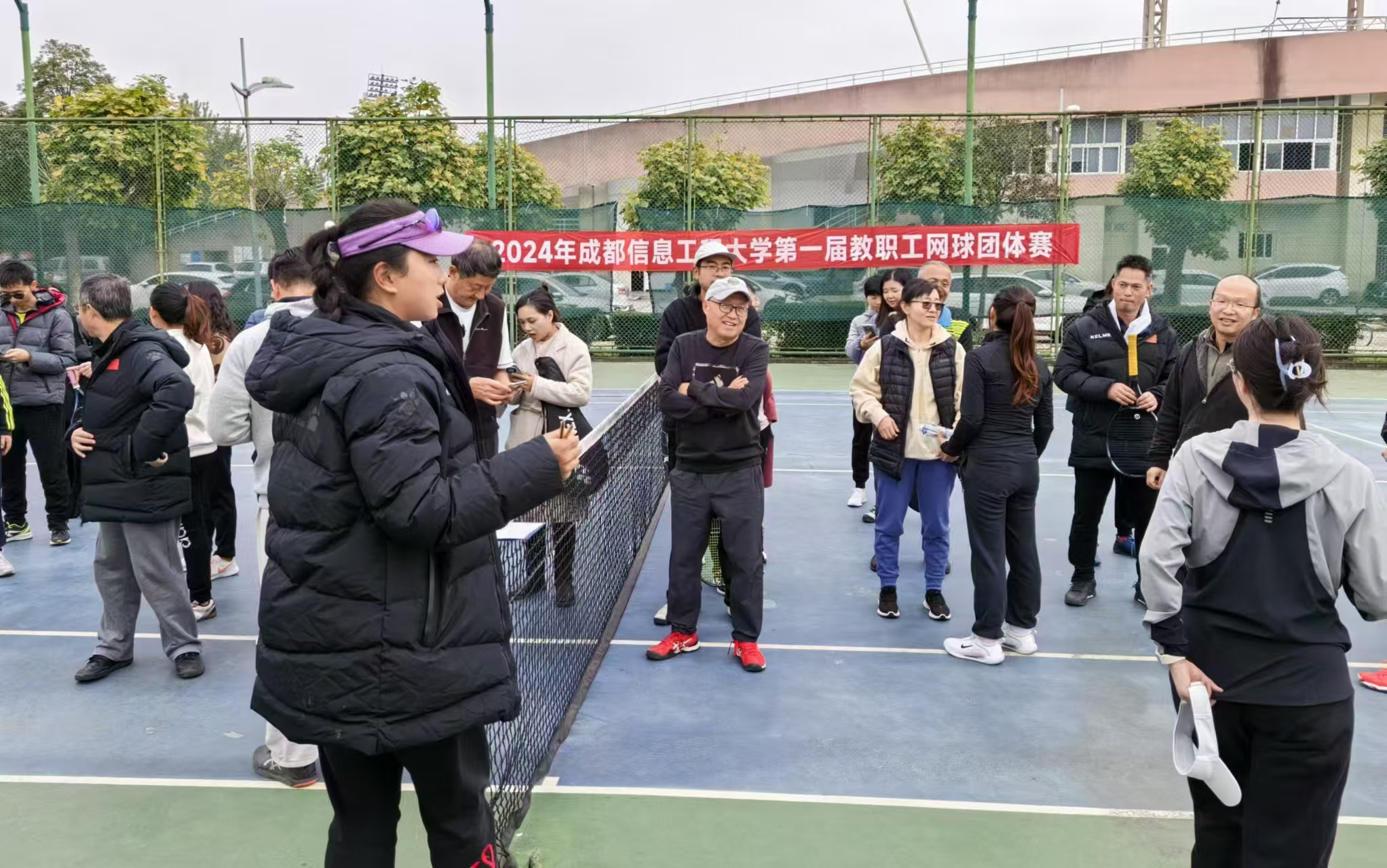 比赛于2024年12月5日14:00在航空港校区网球场准时开赛。此次活动得到了教职工的积极响应,各学院、部门网球爱好者踊跃参与,充分体现了我校教职工对网球运动的浓厚兴趣。