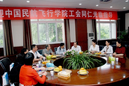 【本网讯】 5月6日,中国民航飞行学院副主席龙百凯一行到我校交流。学校党委副书记、工会主席敬枫蓉,工会副主席高永华、张启惠等热情接待了客人。