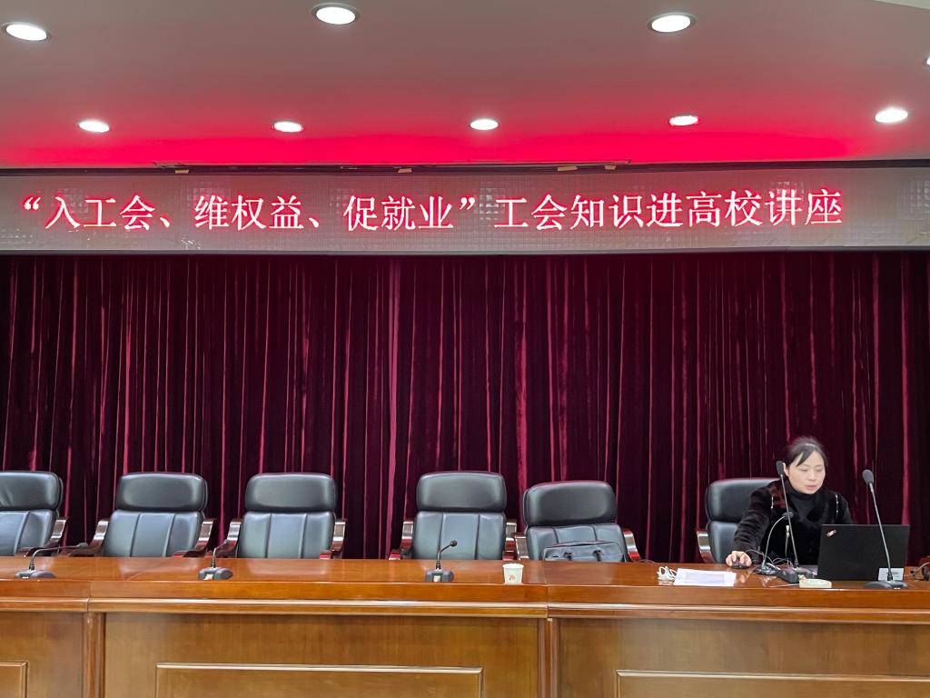 11月29日,校工会在航空港校区,结合展板展示、发放工会会员维权手册、现场互动答疑等形式举办了“入工会、维权益、促就业”工会知识校园宣传活动。12月1日,马克思主义学院教师曾利副教授通过线上课堂的方式,围绕工会知识、劳动法律法规等相关内容作了专题讲座。本次活动通过线上线下相结合的方式,让更多同学了解工会,学习工会相关知识及政策法规,在今后的就业中,更好地维护自身合法权益。在同学们的积极参与和共同努力下,活动取得了良好效果,得到了老师和同学们的好评。